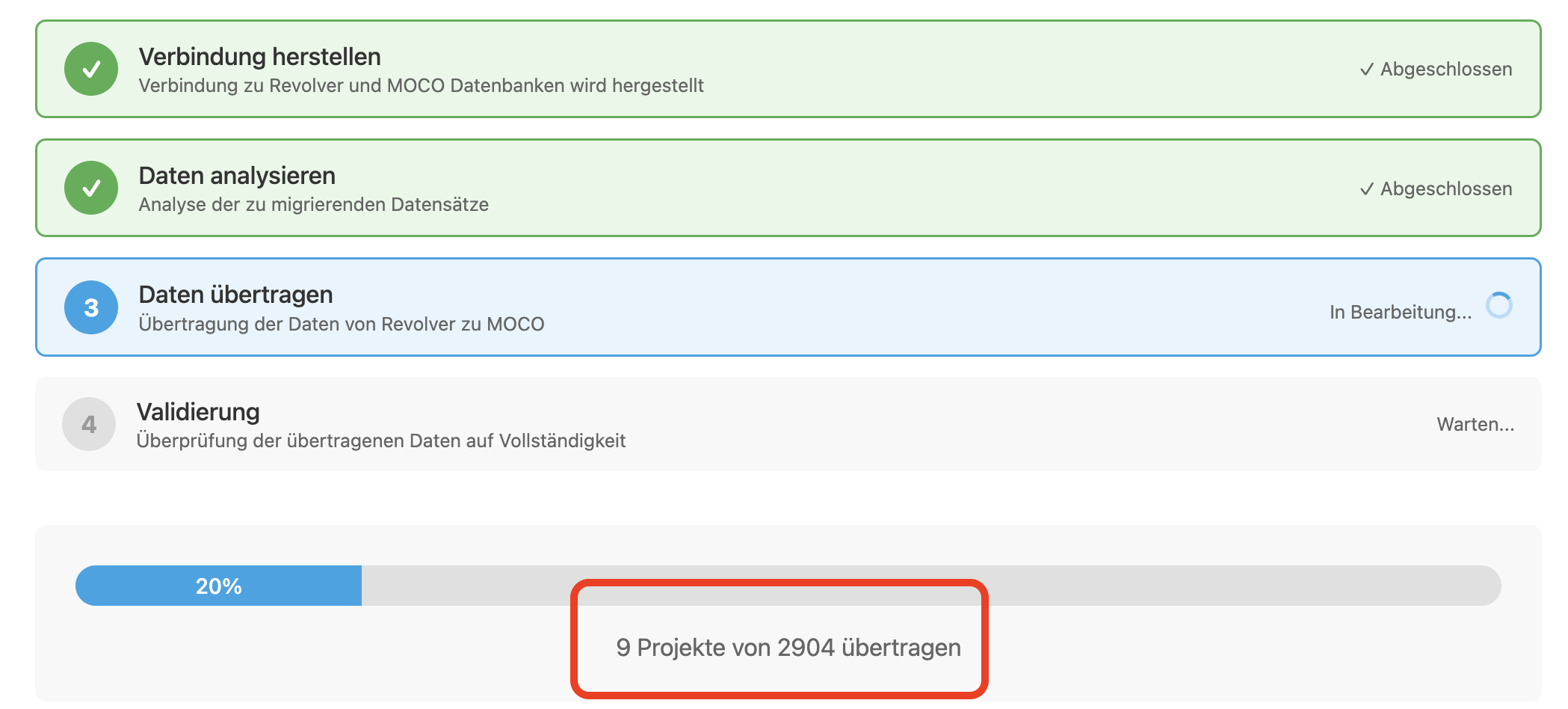 Erledigte Projekte werden nun bei der Migration automatisch in MOCO archiviert.