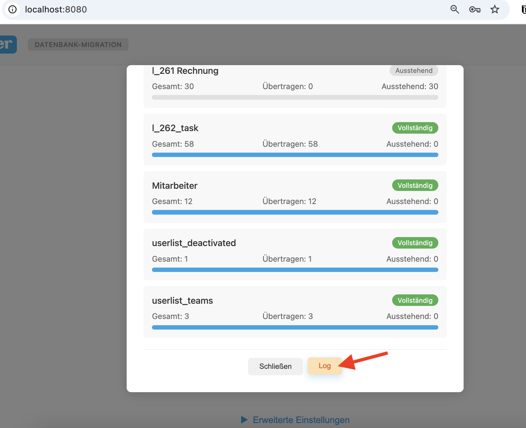 Der Bereich "Migrations-Status" beinhaltet nun einen Zugang zu einem Log-Bereich der einen detaillierteren Einblick in die nicht migrierten Daten enthält. Genauere Informationen folgen.