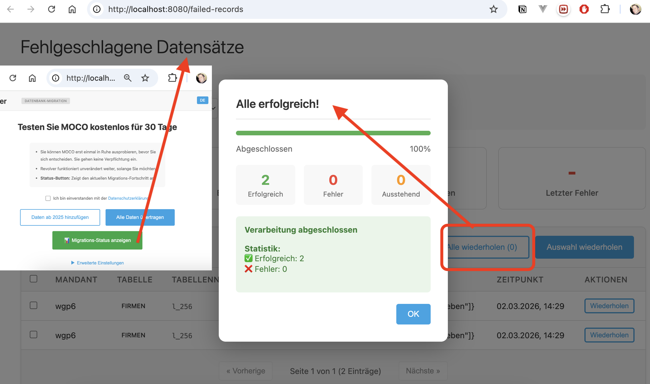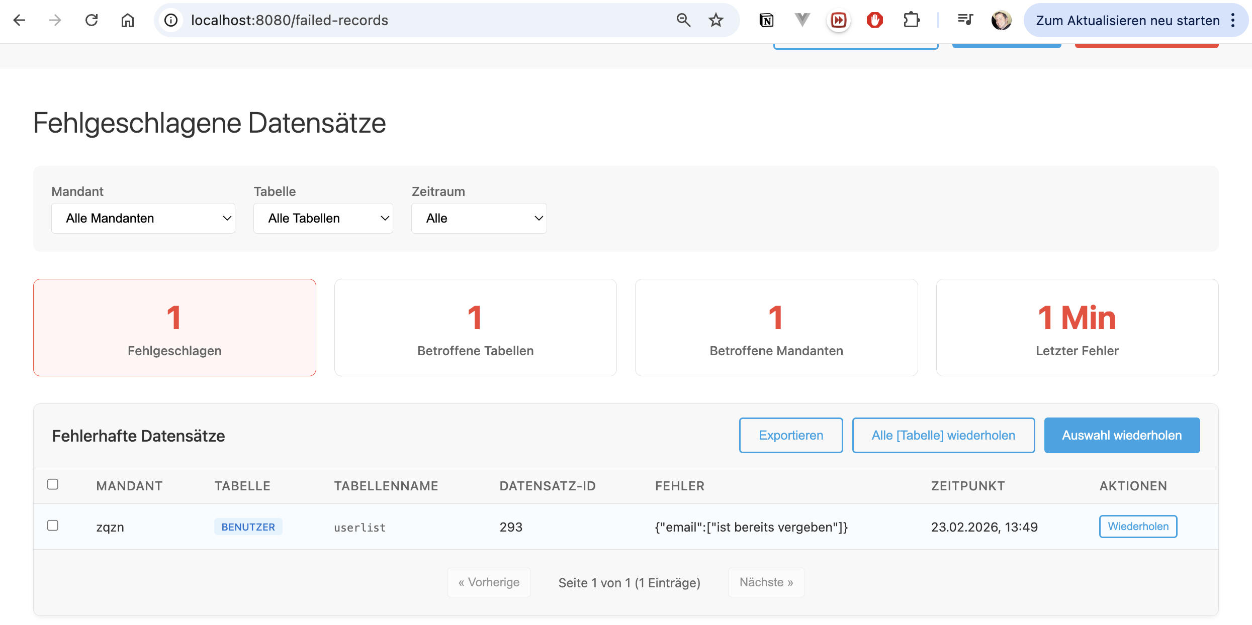 Wiederholungsfunktion von fehlgeschlagenen Datensätzen verbessert.