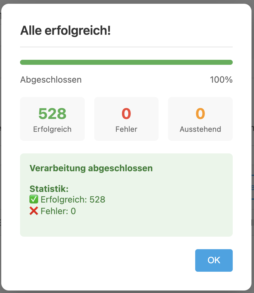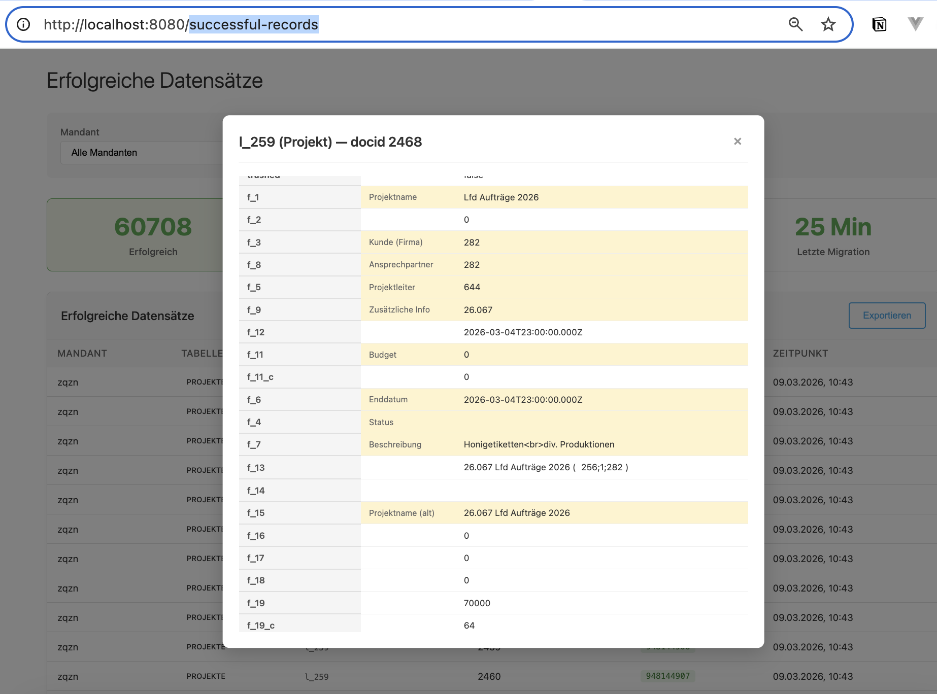 Die Darstellung der Failed-Records wurde überarbeitet. Neu hinzugekommen ist außerdem eine überarbeitete Ansicht der Successful-Records – für eine vollständigere Übersicht über den Migrationsstatus aller Datensätze.