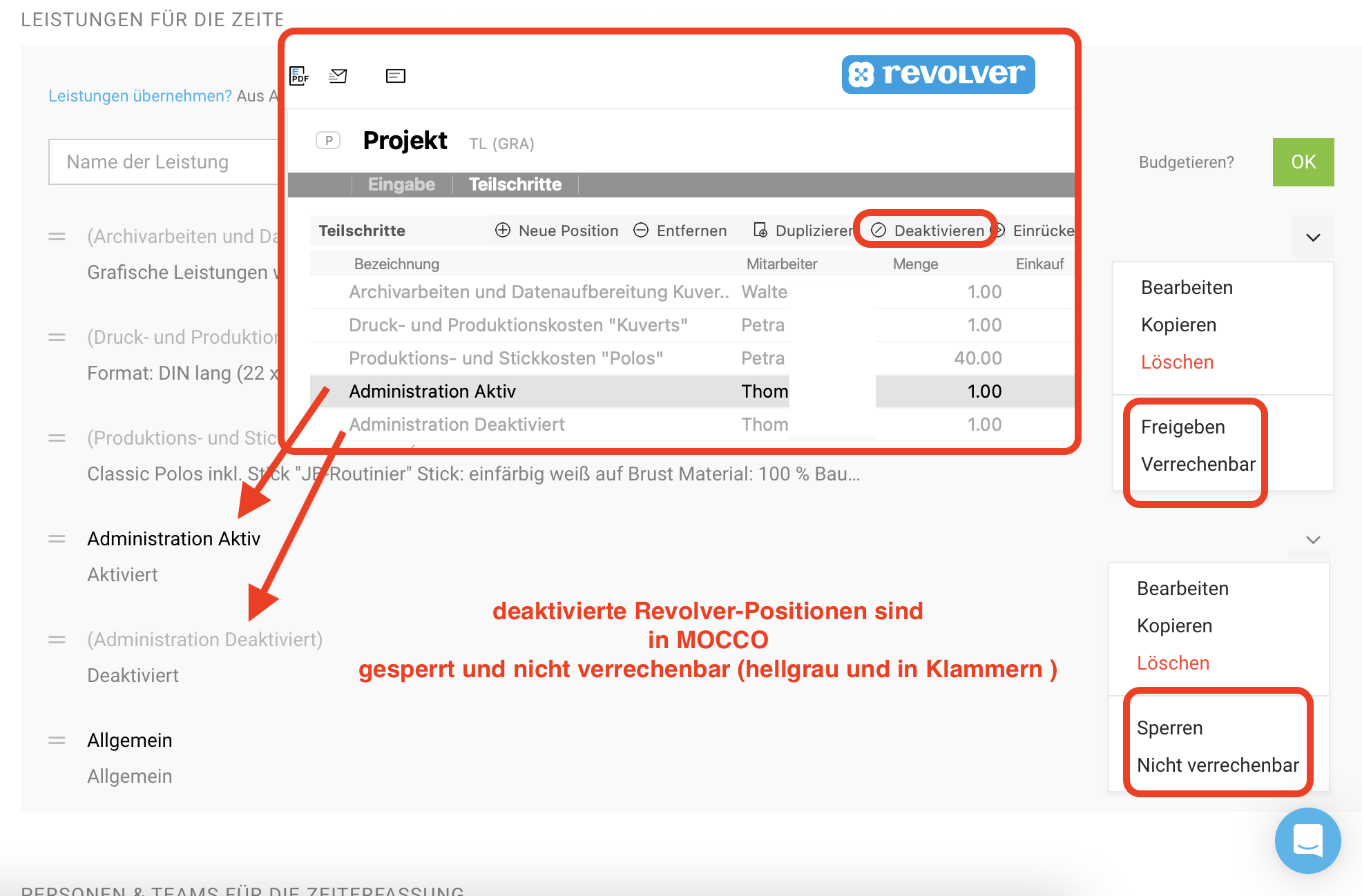 Bei der Migration werden deaktivierte Projektpositionen aus Revolver in MOCO korrekt als gesperrt und nicht verrechenbar übernommen. Damit bleibt der ursprüngliche Status dieser Positionen auch nach der Migration erhalten.