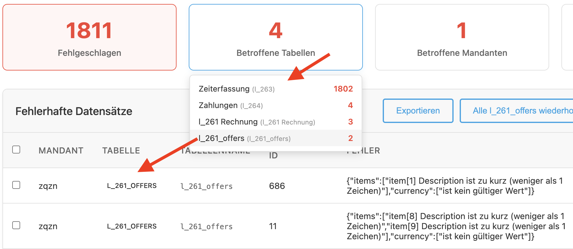 Die Wiederholungsfunktion für fehlgeschlagene Datensätze wurde verbessert. Datensätze, die beim ersten Migrationsversuch nicht übernommen werden konnten, lassen sich nun zuverlässiger erneut verarbeiten.