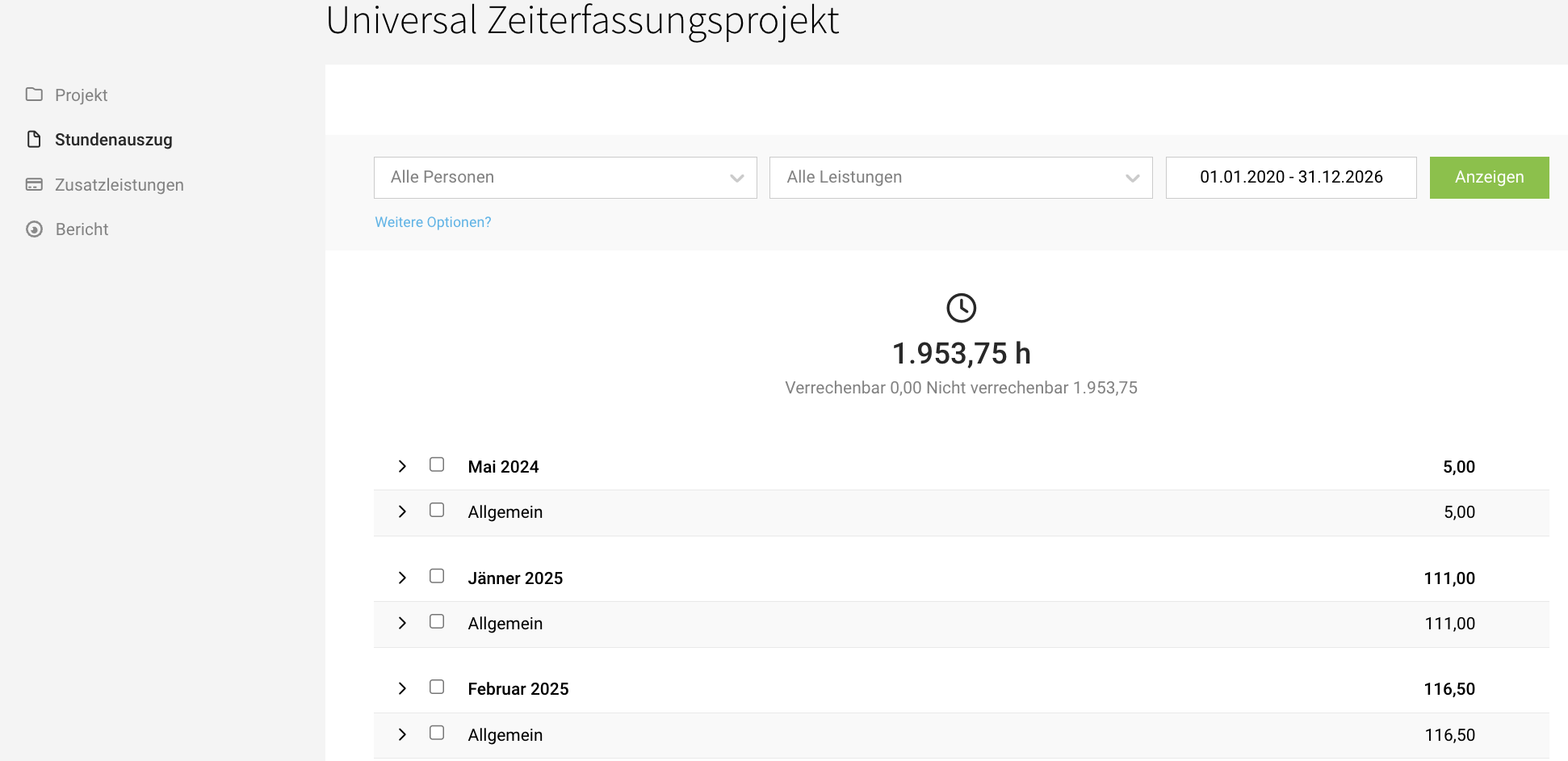 Problem behoben, das bei Zeiterfassungen ohne Projekt entstehen konnte; diese werden nun auf ein spezielles „Universal-Zeiterfassungsprojekt" gebucht.